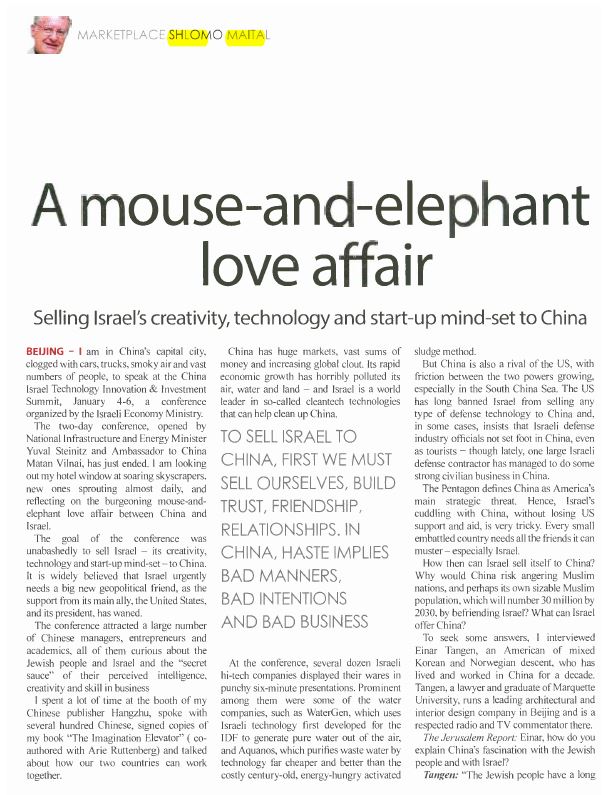 מכירת היצירתיות, הטכנולוגיה ודפוס החשיבה הסטארט-אפ'י של ישראל, לסין.