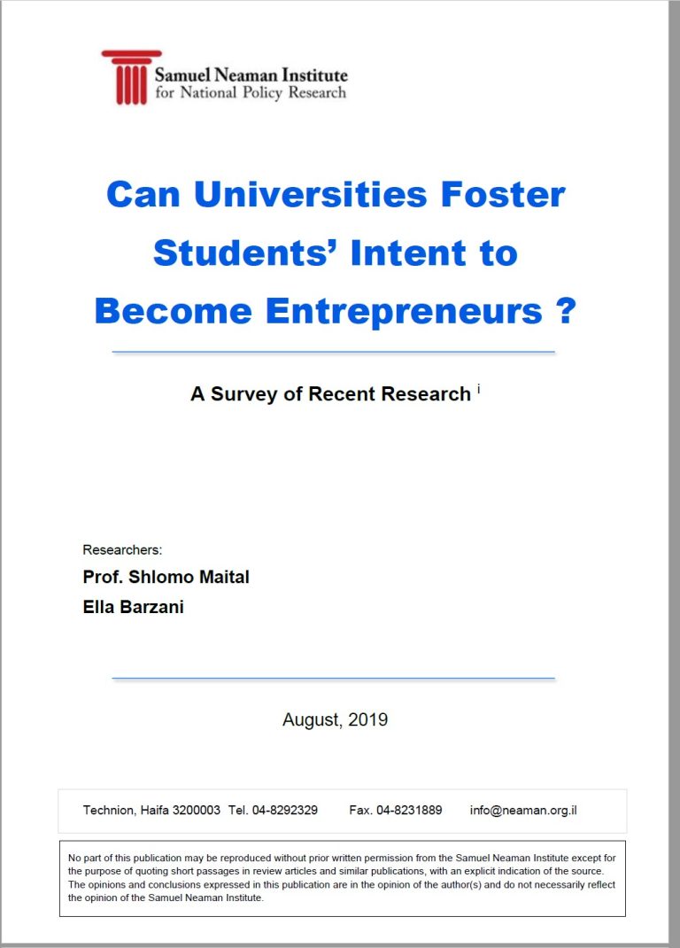 דו"ח זה מסכם מחקרים שפורסמו במהלך 4 שנים האחרונות בנושא: כיצד אוניברסיטאות יכולות לקדם שאיפות יזמות בקרב סטודנטים?