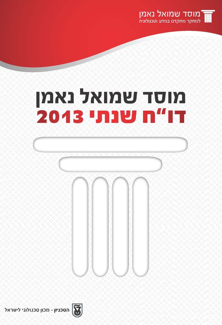The Annual report for 2013 summarizes the Samuel Neaman Institute’s activities for this year in a wide range of subjects. In particular special attention was given to subjects of science and technology policy, higher education policy, environment, industrial policy, and physical infrastructure in the State of Israel.