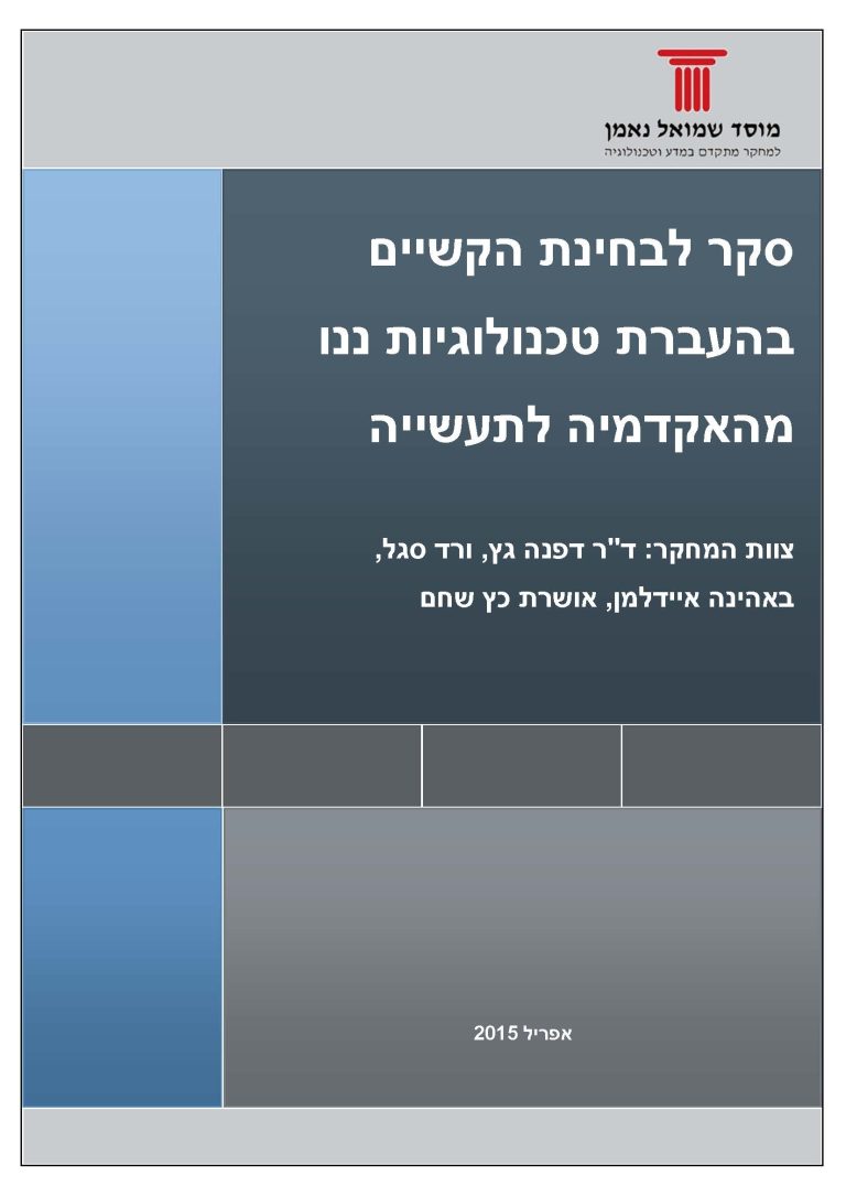 The study was based on structured interviews with stakeholders, survey distribution among researchers of the Nano centers and the Israel Nano conference participants, collection of data from the nanotechnology centers regarding the scope of the nanotechnology research and its outputs.