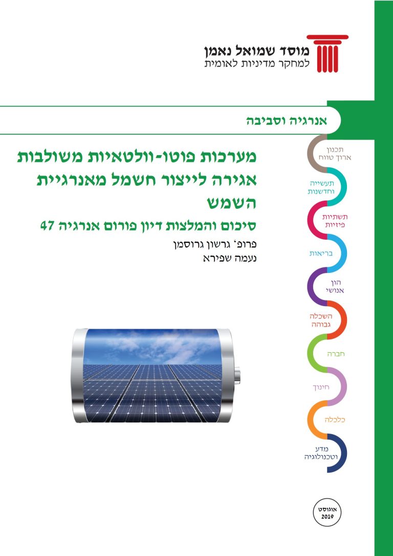 The dramatic decline in the prices of photovoltaic systems over the past decade has brought a fundamental change in the field of electricity production from renewable energy sources. After a long period during which the price of photovoltaic electricity was too high to allow its extensive use, today it is a source that can compete with that of power plants, and on a national grid scale. Solar energy is a desirable but not stable source of energy, and does not always deliver the power at the time at which it is needed. The combination of photovoltaic systems with storage in fact constitutes a new renewable source of energy, which provides a solution for a reliable and continuous power supply according to need. The addition of storage to solar systems is not only a solution to the issue of the discrepancy between the times of supply and consumption, but also has the potential to add significant value, for various stakeholders, at different times of the day and year. The same battery used for domestic purposes can also be used in the distribution and transmission grids for backup, frequency stabilization on the grid, and more.