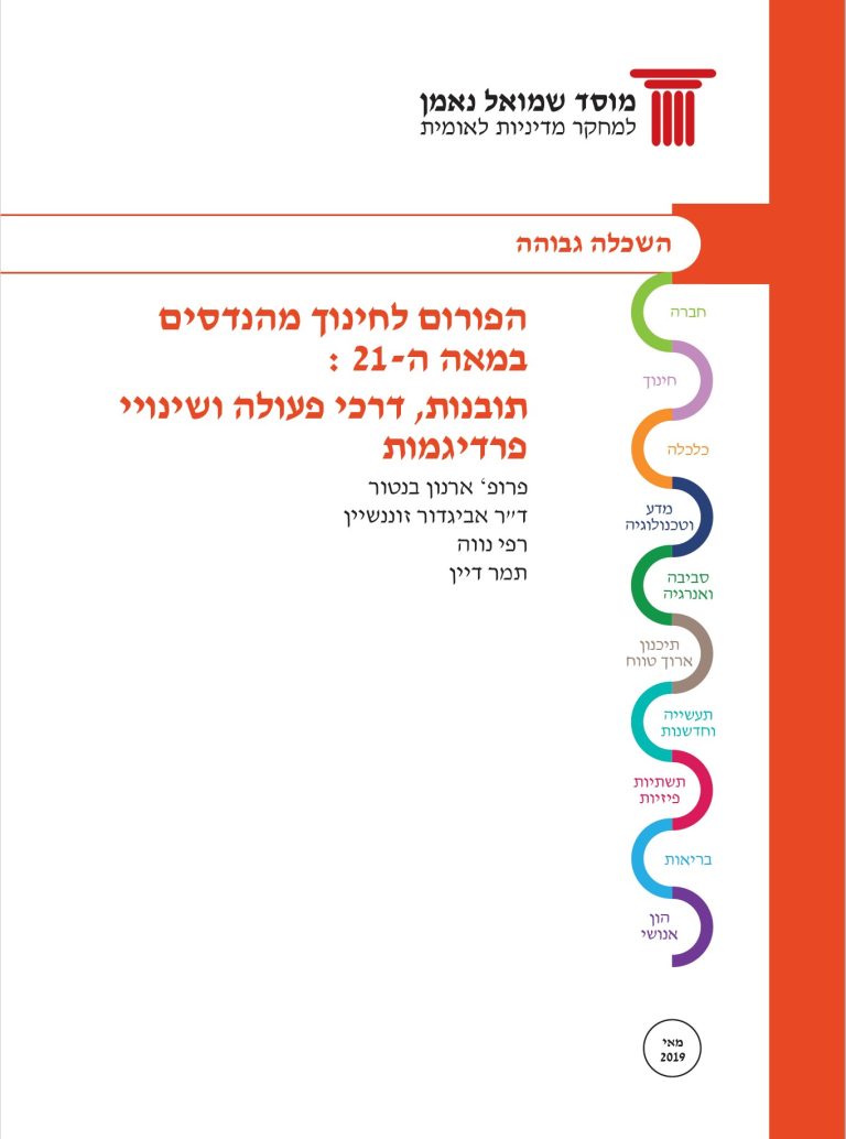 Review and critical analysis of trends and challenges in engineering education, globally and in Israel, especially with regards to knowledge and skills, establishment of Forum for Engineering Education with participation of all of the stake holders (universities, colleges, government and regulators, high-tech industry, traditional industry, young engineers and students) to resolve required paradigm shifts and insights for changes that need to be taken, as well as proposals for action.