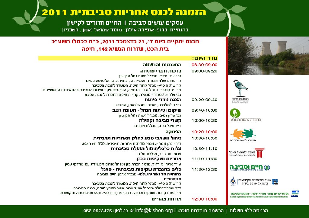 The conference deals with issues related to reconstruction and development of the Kishon River, while examining the environmental and social involvement of the business sector in Haifa and the bay.