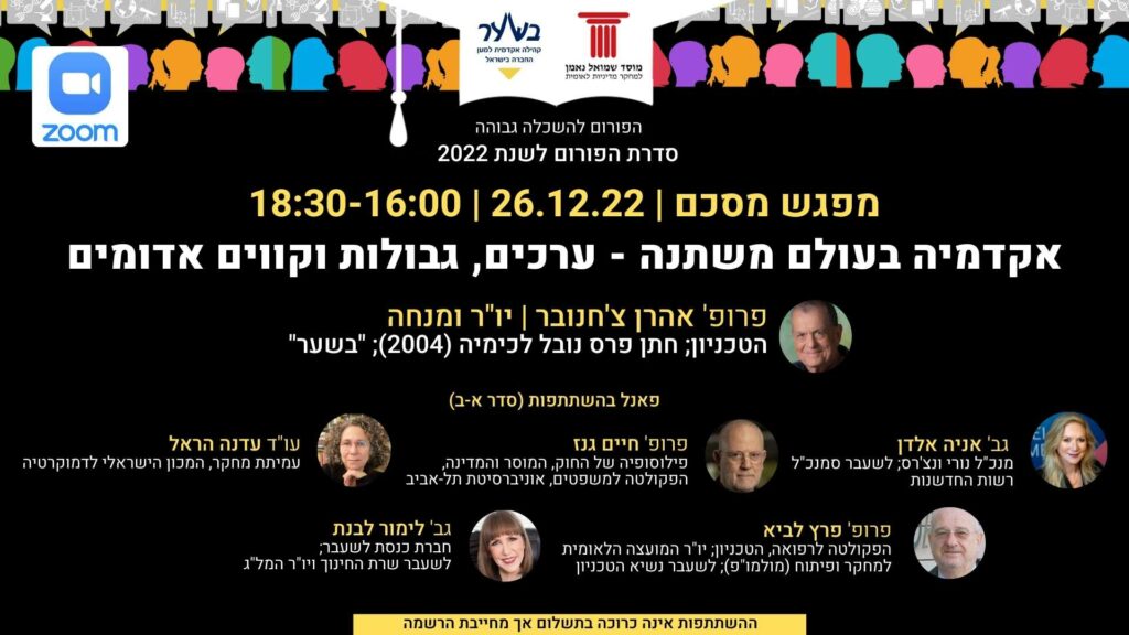 The 21st century has brought rapid technological and social changes, which pose new challenges to academia, society, and the academic ethos and values, including academic freedom. The first session in this series was devoted to examining the limits of academic values, including academic freedom, in the face of challenges stemming from social conditions of polarization and crisis. The second session discussed the economic, social, public, and ethical constraints and limits on the values of academia, including academic freedom. The third session focused on constraints and limits on academic values, including academic freedom, in teaching in general and in professional teaching in particular. In this current and concluding session of the series, we will discuss “values, borders, and red lines” from different perspectives: academic, political, legal, industrial, and philosophical. These will be Israeli perspectives, but some of them are relevant to academia worldwide.