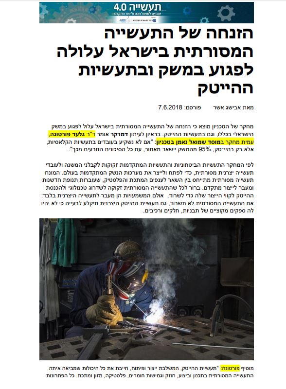 Dr. Gilead Fortuna is a Senior Research Fellow and the Founder and Head of the Center for Industrial Excellence at the Neaman Institute Committed to enhancing the veteran industry, the center, under his leadership, fosters improved collaborations with academia, implements industry 4.0 technologies, and strengthens ties with the hi-tech sector. The vision is smart, productive, and globally competitive, and green, providing good employment to everyone. Driven by a vision of a smart, productive, globally competitive, and environmentally friendly industry, the initiative aims to generate substantial employment opportunities. He has a BSc and MSc in Chemical Engineering from Technion and a PhD in Chemical Engineering from the University of Illinois and a graduate of the AMP program at HBS. He has extensive industrial management experience in diverse sectors. He was the Senior VP at Rafael, CEO of Tami-IMI, CEO of Fertilizers and Chemicals and VP of BD of Teva Pharmaceuticals. He is the Founder of Aquise, a leading water company and Novetide, a peptide company. He is a member of the Technion Board of Governors and was until recently a member of the Technion Council.