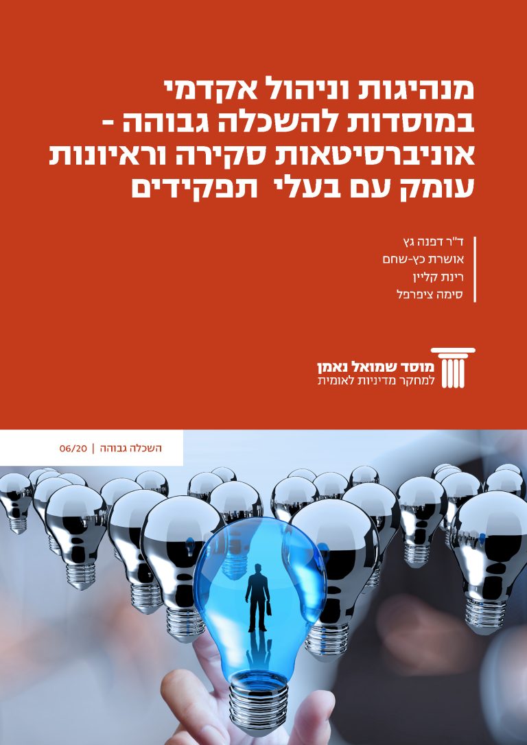 The higher education sector in Israel is facing numerous challenges and the need for effective leadership is crucial for the successful implementation of the goals of academic institutions. To address this issue, the National Program for the Development of Academic Leadership conducted a study on leadership and management in academia in Israel. The study included several research methods, including preliminary meetings with selected academic leaders, a comparative literature review, and semi-structured interviews with leaders from various universities in the country.The higher education sector in Israel is facing numerous challenges and the need for effective leadership is crucial for the successful implementation of the goals of academic institutions. To address this issue, the National Program for the Development of Academic Leadership conducted a study on leadership and management in academia in Israel. The study included several research methods, including preliminary meetings with selected academic leaders, a comparative literature review, and semi-structured interviews with leaders from various universities in the country.