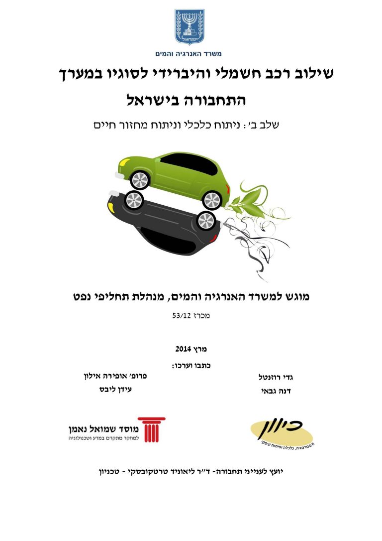 Ayalon, O., Grinberg, Y., Liebes, I., Rosental, G., & Gabay, D. (2014). Integration of electric and hybrid vehicles in Israel’s transportation system. Samuel Neaman Institute.