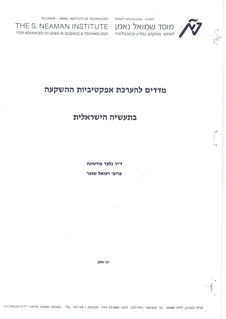 We hope that further research by these methods will contribute to this important discussion and lead to more effective government policies for promoting a larger healthy industrial basis for the Israeli economy.