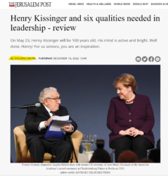 On May 23, Henry Kissinger will be 100 years old. His mind is active and bright. Well done, Henry!
