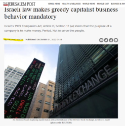 Israeli law makes greedy capitalist business behavior mandatory