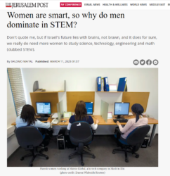 Israel’s future lies with brains, not brawn, hence we really do need more women to study science, technology, engineering and math (dubbed STEM).