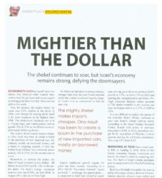 The shekel continues to soar, making exports more costly, but Israel’s economy remains strong, defying the doomsayers