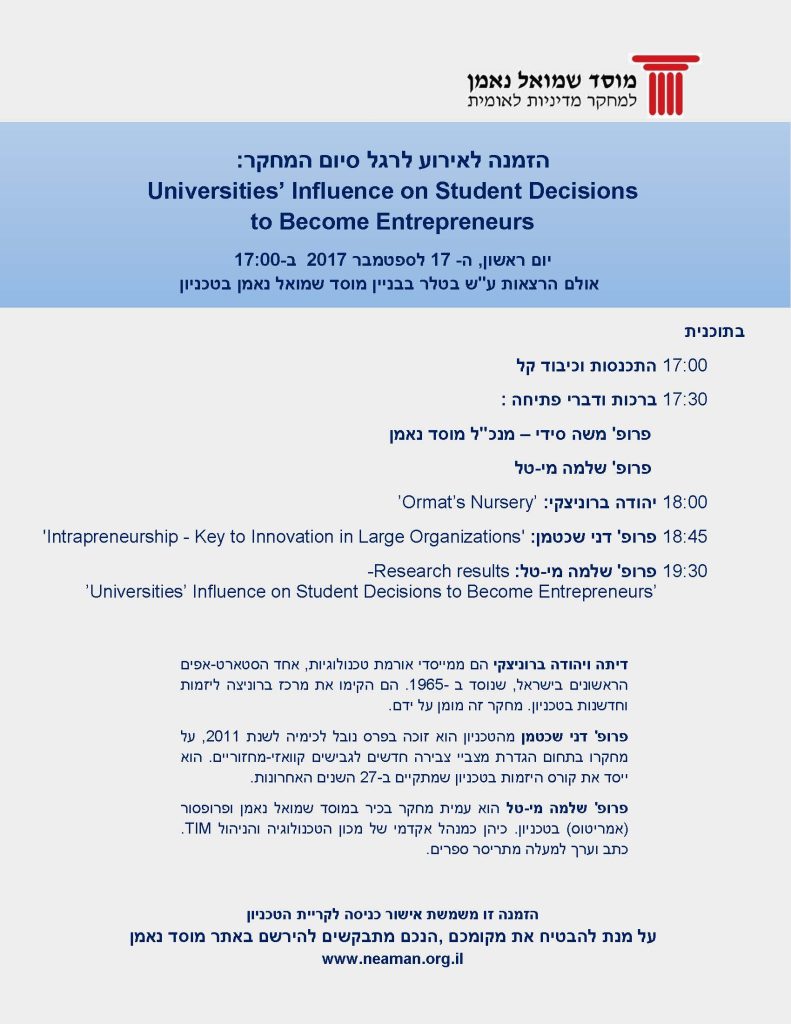 השפעת אוניברסיטאות על החלטת הסטודנטים להיות יזמים