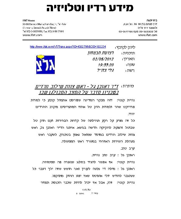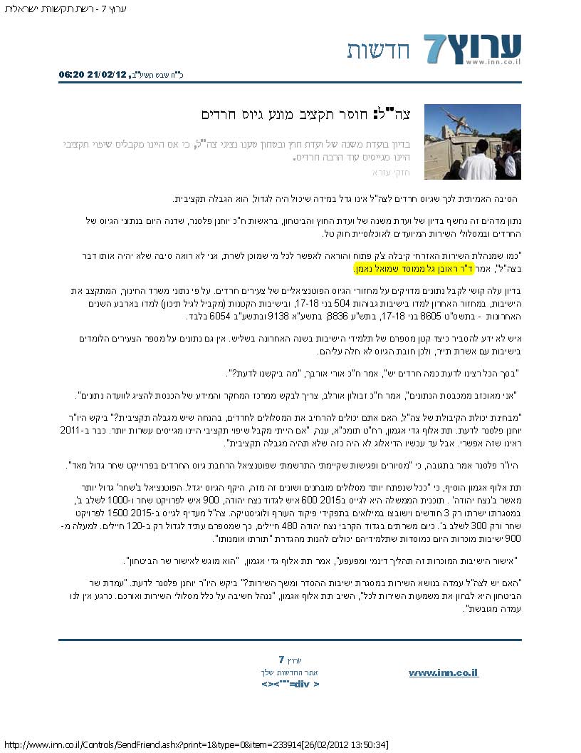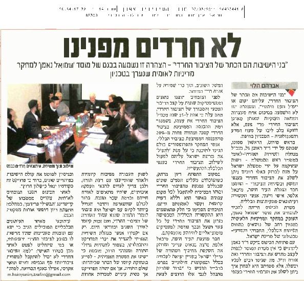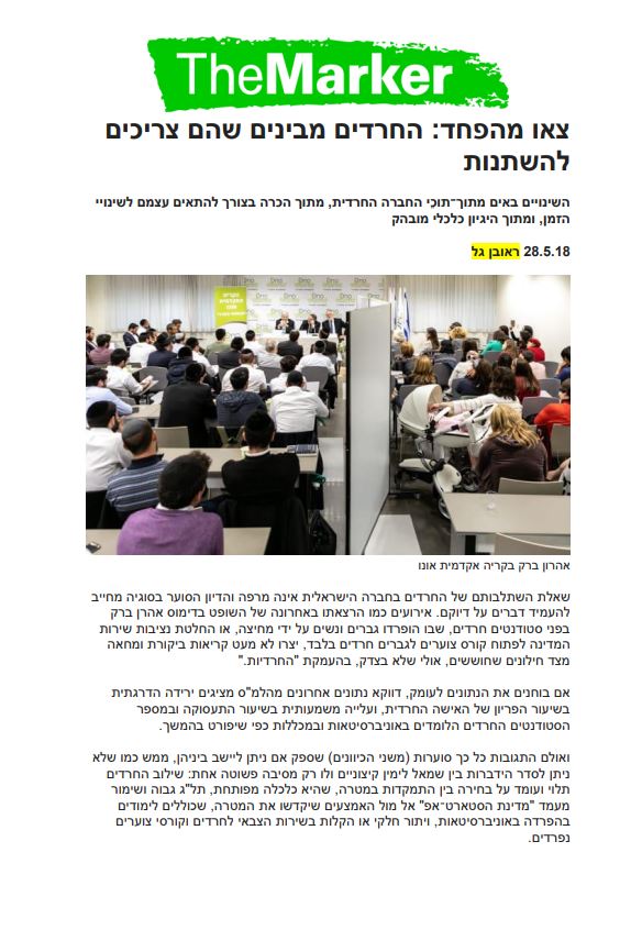 שילוב חרדים: מודל, תסריטים ומיפוי