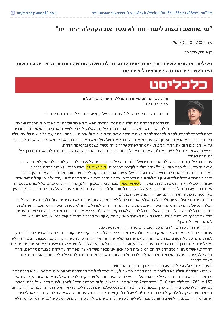 מייחל לאלפי חרדים באקדמיה