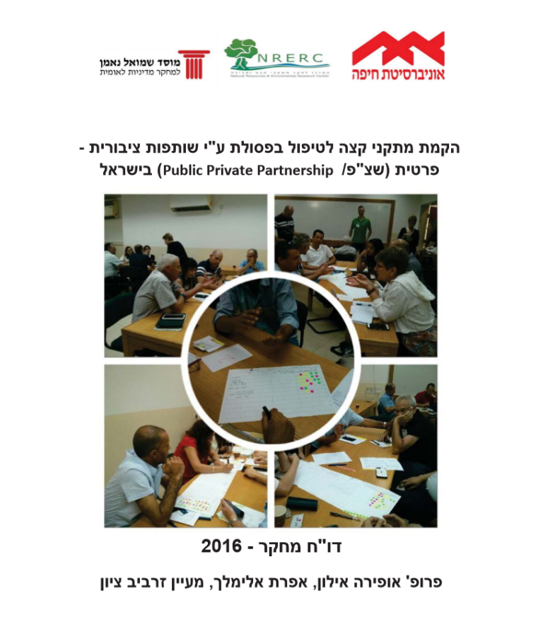 המחקר, המבוצע במסגרת מענק מחקר של השלטון המקומי – מפעל הפיס ומרכז השלטון המקומי בוחן את הגורמים המעכבים את הקמתם של מתקני קצה בישראל, ובפרט, האם הקמת מתקני קצה לטיפול בפסולת בשיתוף המגזר הציבורי והפרטי (שצ"פ/ (PPPיכולה לתרום להסרת החסמים ולהשגת מטרות המדיניות של המשרד להגנת סביבה.