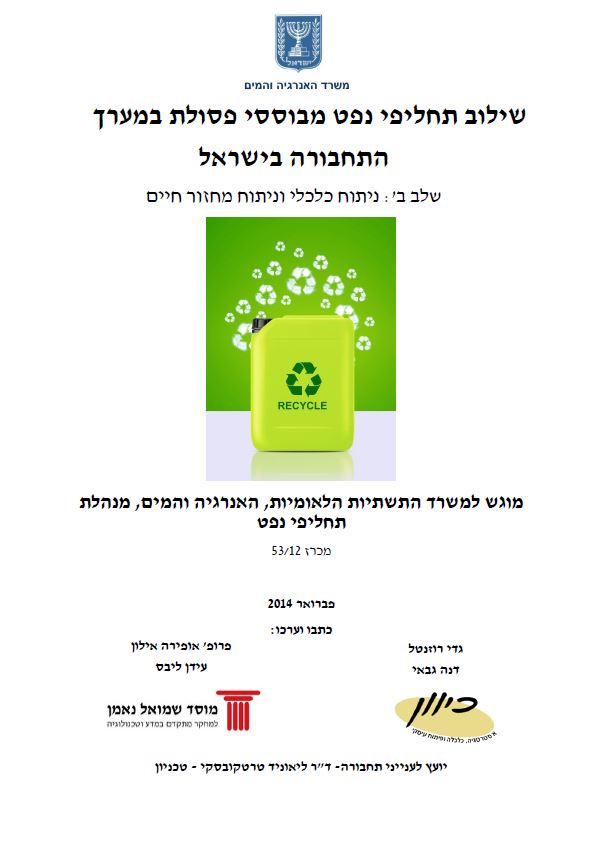 שילוב תחליפי נפט מבוססי פסולת במערך התחבורה בישראל – שלב ב': ניתוח כלכלי וניתוח מחזור חיים