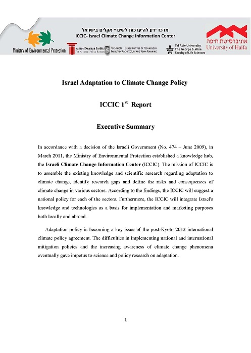 במסגרת פעילות מרכז הידע הישראלי ((ICCIC הוכן דו"ח ראשון אשר משקף את מצב הידע הקיים נכון להיום בנושא השלכות שינויי האקלים על מדינת ישראל.
