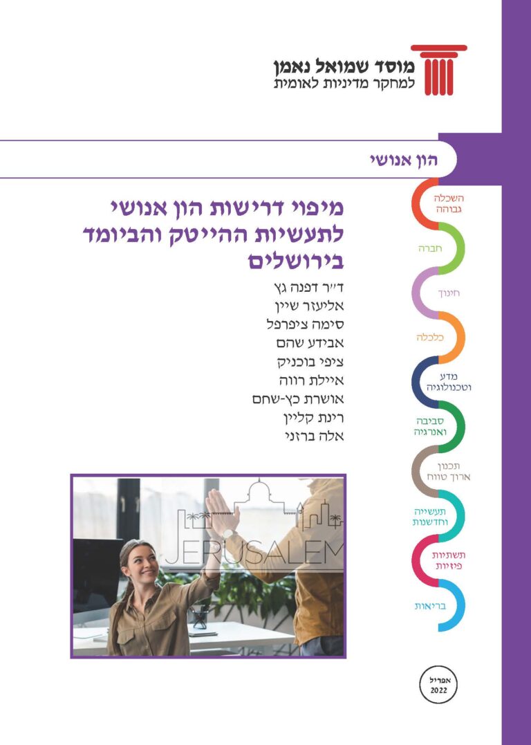 דוח זה מציג ממצאים מפורטים מסקר שנעשה בקרב חברות מתחומי ההייטק והביומד בירושלים ובו נבחנו רמת השכלה ותחומי לימוד נדרשים; מיומנויות מקצועיות; כישורים רכים וצפי לגיוס עובדים חדשים. כמו כן מציג הדוח את מענה החברות בנוגע לקשיים בגיוס עובדים, פתרונות מוצעים ונתונים אודות נכונות לגייס צעירים ללא נסיון תעסוקתי קודם. בנוסף, מוצעים מודלים שונים לשילוב אקדמיה-תעשיה בתהליך ההכשרה.