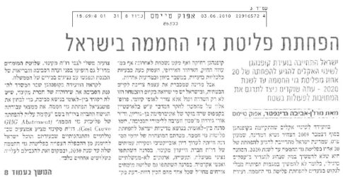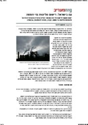 המשרד להגנת הסביבה מקים מנגנון רישום פליטות גזי חממה בישראל, הפיילוט יחל להיות מיושם במהלך השנה